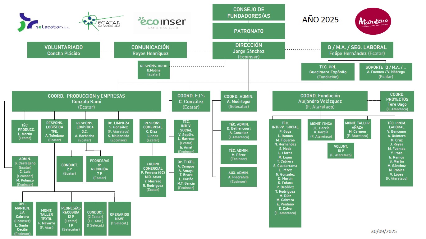 Organigrama: la Empresa de Inserción Ecoinser Canarias está integrada en la estructura orgánica de ATARETACO.
